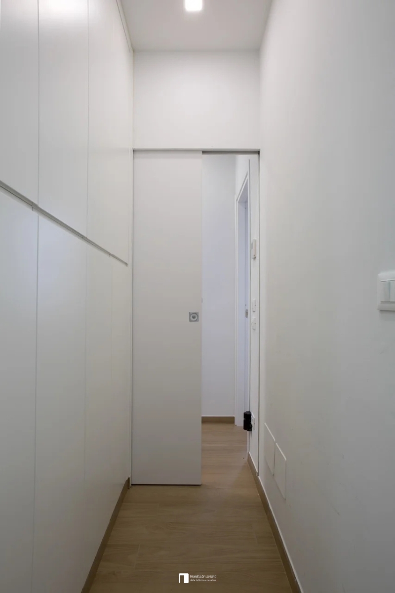 Porte coulissante affleurante standard dans le couloir