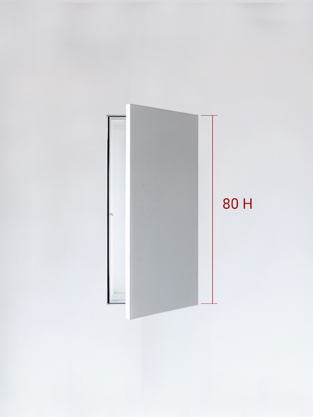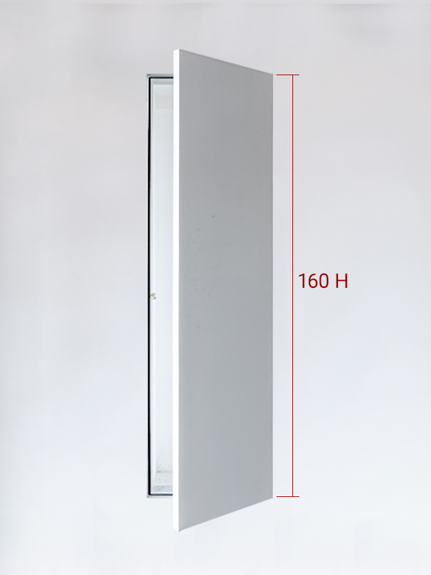 Panneaux invisibles 1 vantail pour les compartiments techniques: une Panneau invisible 1 vantail pour niche 30×30 avec sens d'ouverture vers la droite et avec système de fermeture Pression (sans poignée); une Panneau invisible 1 vantail pour niche 40×20 avec sens d'ouverture vers la droite et avec système de fermeture Pression (sans poignée); une Panneau invisible 1 vantail pour niche 50×140 avec sens d'ouverture vers gauche et avec système de fermeture Pression (sans poignée).