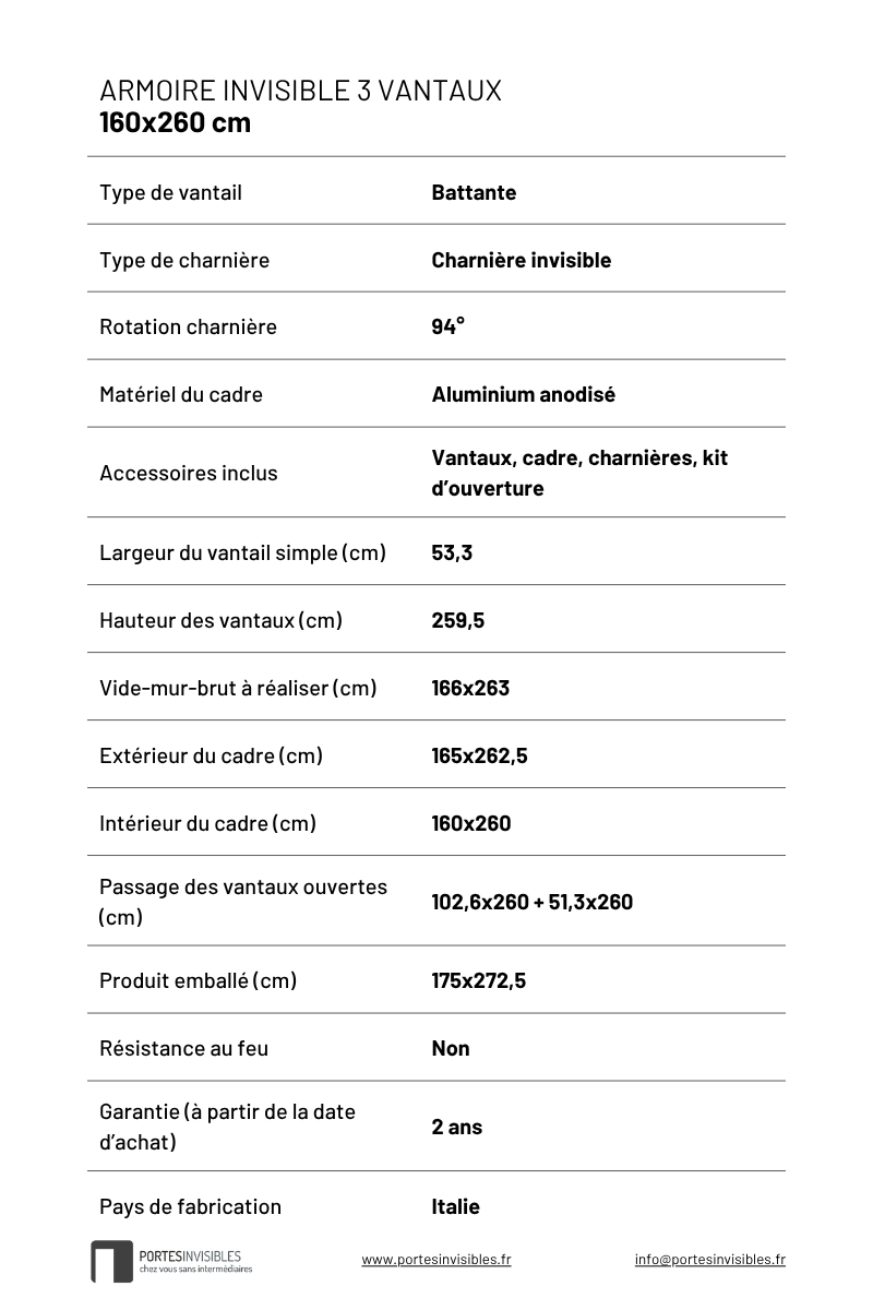 Armoire invisible 3 vantaux 160×260 cm