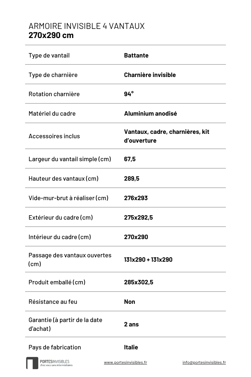 ⚠️ Les systèmes d’équipement intérieur (étagères, tablettes, commodes, porte-manteaux, etc.) ne sont pas inclus dans nos produits.