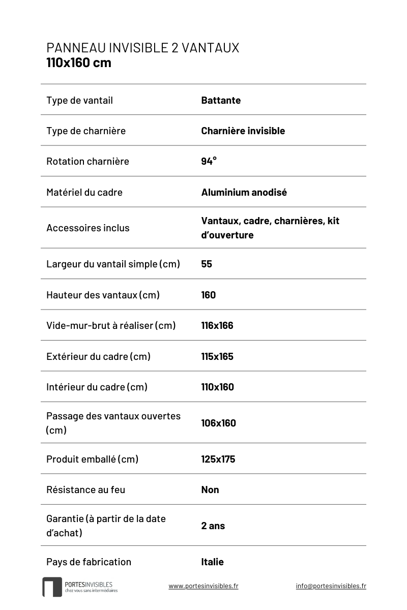 ℹ️ Pour plus d’informations, consultez la section consacrée à la pose des portes battantes invisibles.