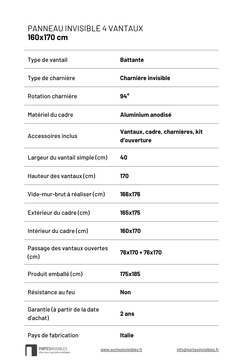 Panneaux invisible 4 vantaux pour niche 160×170